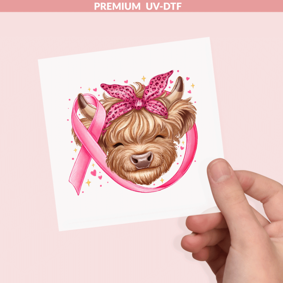 Highland Cow with Pink Breast Cancer 11oz Mug